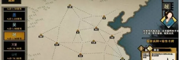 二技能:出使国家,不用刺探,就国家特性有高军心的,或者找攻略,60~80战力,你打其他国家就是降维打击。