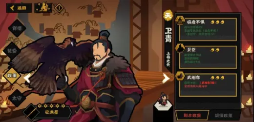 五星二级装备100~120战力,62好感,无消耗,3特资。和吴起比,120战力,征兵下降30%,腐化低于15,3特资,大部分给战力的名臣直接成笑话了。