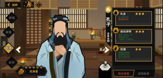 三技能:双核。80威望,60战斗力,腐化降低30。对比刑天,50民心70战力30军心。前置条件都容易满足,但刑天自己减不了民心(政策加速钱粮不够,且不算自己减),孔子自己能加威望。70战力强过60战力,加军心不如减腐化,收益差不多。刑天要3特资,孔子不需要特资。贤者压军事,非常能打。