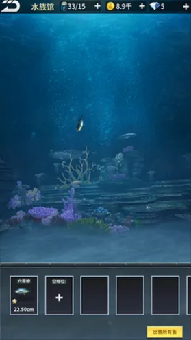 6、你可以选择直接出售,转化金币入账,也可以采取“放长线钓大鱼”的思路,先“放入”水族馆养一段时间再卖,鱼在放入水族箱后会不断成长,卖出时获得的金币也会更高哦