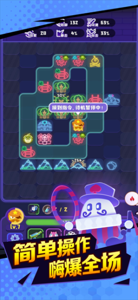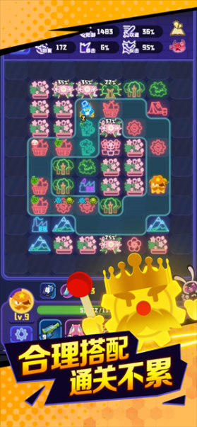 玩家的每个决策都影响着游戏进展:关卡需要玩家通关十个循环,每个循环结束都会休整来放置地块,技能和地块都是随机刷出,计划选择更有利的技能搭配,规划地块怎样合成摆放最大化增幅角色,都是策略的一环,玩家的每个选择都会影响下个循环的表现。