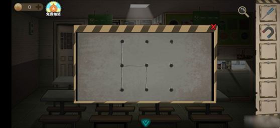 去禁闭室,监控室左面墙上的日历对应禁闭室密码,1425623。将模型放到锁链上。按开关。点击左侧手术台,将铁棍插入孔洞,放上轮子,升起手术台,获得半片钥匙,组合工具栏里的钥匙,用钥匙打开右侧柜子,获得骨头。用螺丝刀卸下通风口(右下方),获得磁铁。
