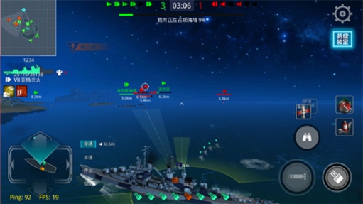 航行操作是通过上下速度档位和左右方向键来实现的,玩家只需要通过上下键在全速、半速、停止、倒船四个档位中进行选择,使用左右键任意调整方向就可以实现战舰的航行,简单的操作却能让你体验真实的战舰航行,享受海战带来的激情。