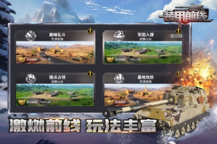 陆战之王悉数登场,搭配丰富的技能组合,在战场中起到守备中坚,突击冲锋,侦察骚扰,远程支援等作用,还有多样的涂装,打造你专属的最强钢铁之师。