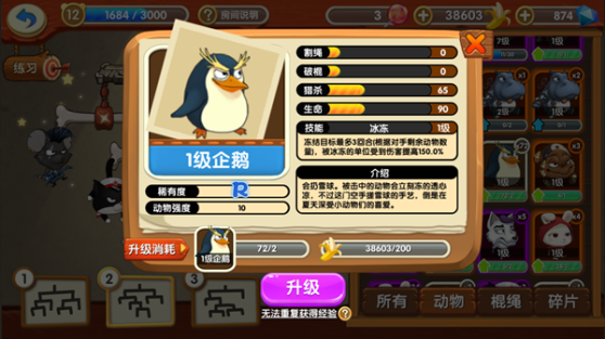 小技巧:主页的许愿池点击后,可以选择礼物,每次都只需要1分钟的等待时间,其中还有需要特殊条件才能解锁的动物和绳组,在游戏时可以多许愿多获得。