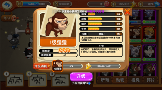 会扔石头,作为这个游戏的主角,猴子砸棍子和动物的本事非常精湛。