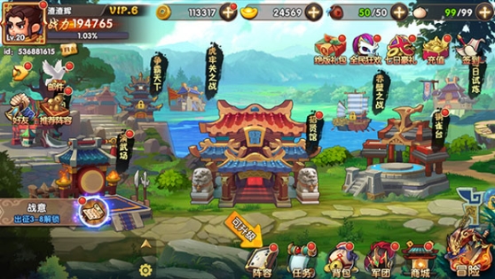 文韬武略中的战意系统,不但可以打通主角的全身经脉,提升人物属性,还可以获得一定数量的铜钱、武将碎片,拥有了强大的实力,才能在征战中走的更远!