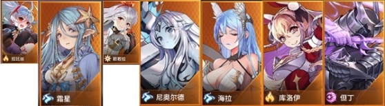 后排放置【尤娜】【拉比斯,尼奥尔德,但丁,库洛伊,乌特迦,魁霎】【欧若拉,霜星】