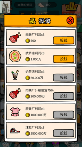 从一步一步原始资本积累,赚取游戏内第一桶金,进军各项领域,从烧烤摊到珠宝店再到核电站,享受资本膨胀。小威提醒:升级商店是偏向有高级往高级的开,店铺开到越后面收益越高哦。