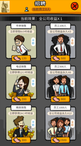 4、当然一个好的公司需要招揽一些有用的人才,多招聘员工也是玩法之一。