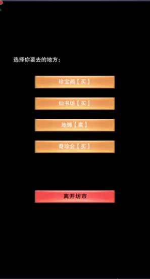 在珍宝阁中,玩家可进行丹药、丹方、玉石、图纸、门派信物的购买。珍宝阁的每日刷新时间为0点及12点,玩家的声望越高则可进入的楼层越高.在仙书坊中,玩家可进行功法的购买,购买的功法不会消耗玩家的技能点。在奇珍会中玩家可买到的物品种类较多,不论时丹药功法还是食物木材都可在此进行购买。