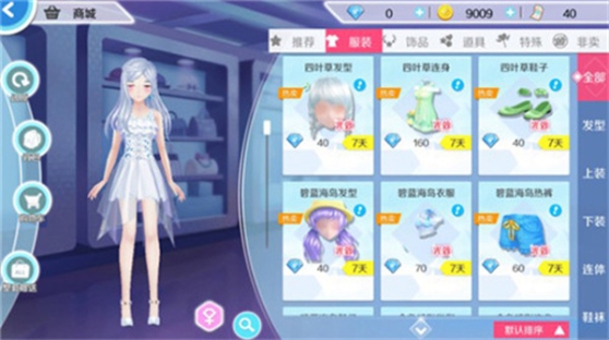 服装分为发型、上装、下装、鞋袜4个部位,此外还有上下装一体的连体服饰。连体服装无法与上下装同时装备