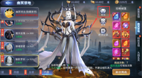 通过选择所需要的领主,点击【关注】按钮对需要的领主进行关注,关注成功后,系统会在领主刷新前的1分钟弹出提示窗口通知玩家前往挑战。