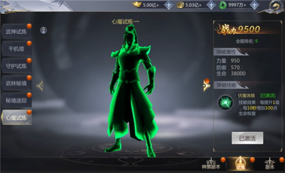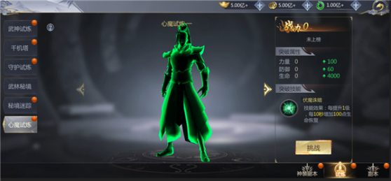 4、心魔试炼的挑战时长为5分钟,在限定时间内击败领主,即判定为挑战成功,可返回心魔试炼界面激活突破技能,并激活下一关心魔试炼。