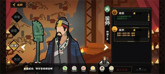 贤者方面由于厉害的都是紫色起步,新加入的蓝色名臣也为威望流服务的本身强度一般,所以这里建议还是遇事不决选国师,虽然一次性卡片烧钱但你前期就能烧,而且不需要稀有资源,对于后期国家来说国师的这两张技能卡可以极大地补充前期打流寇的空缺和扩张的战力差。