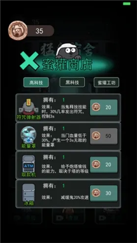 3、拥有强大的反击武器可以使用,在蜜獾商店里面购买黑科技,里面的武器和装备可以对猛鬼造成反击。