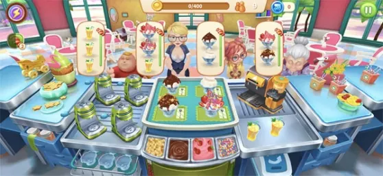 在关卡进行中,会有不同的顾客前来点单,每位顾客会提出自己想要的商品并停留一段时间。只要我们按照顾客要求尽早为顾客上菜,就能获得更多的金币奖励,相反就只能得到很少的奖励,更有可能由于等待时间过长,导致顾客离开。