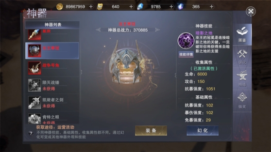 坦克流圣堂战士神器首选巫王寒冠和夜神之盾。巫王寒冠是一件很有意思的神器,需要用奥义去撕裂这件神器所连通的暗影之地,将巫王寒冠“打破”会使敌人命中大幅降低,同时提升自己的闪避,这点对于防御方面的提升影响很大。