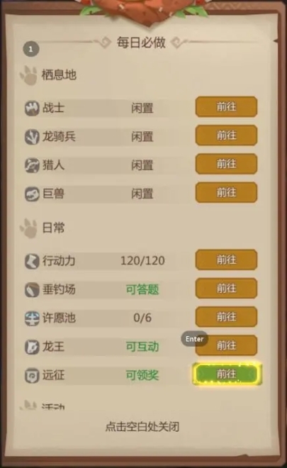 除了以上必做内容以外,每日任务也是一个必做的内容,点击前往就可以完成,这里就不跟大家过多赘述了
