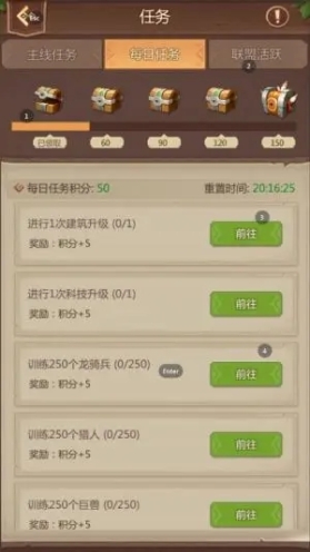 小Tips:其中训练兵种的任务是领兵的时候结算,大家可以提前造好,每日刷新之后领取即可完成,采集任务也是挖矿回家结算(需要算好回家的时间)