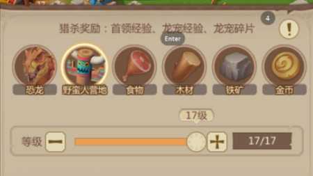 3、不断提升部落等级,开启一场盲荒狩猎。