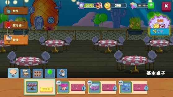 3、设计出最棒的海绵宝宝餐厅,在这里制作出超级美味的食物。