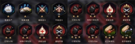 提供强力科技能力,加强蚁国生存,军事,防御能力;适当的升级对应科技能在不同阶段造成事半功倍的效果。