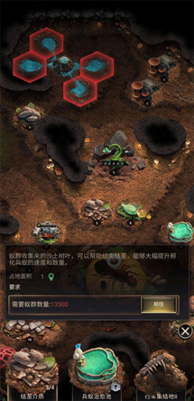 ③解锁特化蚁技能,升级特化蚁技能能提高兵蚁部队强度。