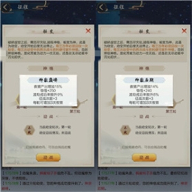 简单的说这个关系的是征程里夜猎(相当于地下的神游)次数和收获多少,神格越高收获越多(例如:神宗巅峰和神宗后期的收益效果如下图,是有差别的)。正常不用避劫丹的话,是3天才可以打一轮(一轮必须2胜才可以进阶神格,否则神格降级)。每一阶神格,又分为入门、初期、中期、后期、巅峰5个小阶段,若是3天才可以挑战一个阶段,一个大阶段需要15天才能晋升一次神格。