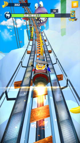 另外,在“小黄人赛跑”模式中,撞到障碍物也不会 GAME OVER,但会大幅减速,让你落后其他小黄人,千万要注意哦!只有夺得“小黄人赛跑”的终极宝座,才能成为史上最邪恶的坏蛋!你准备好了吗?