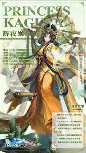 在第七幻域设定中,辉夜姬诞生于玉竹之间,集天地灵气、吸日月 精华。她的美并不张扬,可却有种温润人心的力量。她的言语,就像在茂密竹林中拂面的清风,能够得到灵魂深处的宁静。