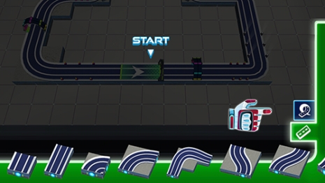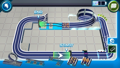4、你们把自己想要的赛道组装好了之后,就可以直接去点击右上角的【绿色旗帜】,你们就可以马上开始游戏了。