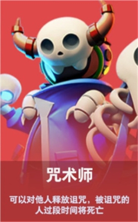 咒术师可以对其他阵营释放“诅咒”,被“诅咒”笼罩的人过段时间将会“死亡”。注意,所有人都能看见你释放的“诅咒”,一定要隐藏好自己哦!