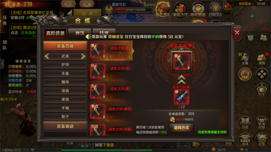 本服高阶装备可融合可进阶!绝对保值!人品爆发一件神装卖几百大洋不是问题!