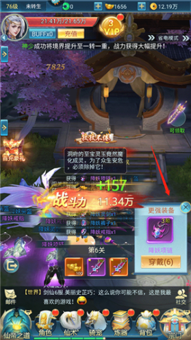 2、在战斗时会掉落各种装备,你可以将装备穿戴在角色身上用来提升战斗力;