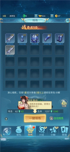 熔炼装备可获得熔炼经验,累积对应经验可提升熔炉等级。每级熔炉等级可提供属性和战力加成。激活自动熔炼特权后,当装备背包满90%且有可熔炼装备时,会自动熔炼装备,无需手动熔炼。