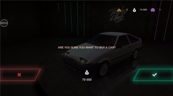 3、车子需要用金币进行购买,玩家需要通过游戏来赚取金币。