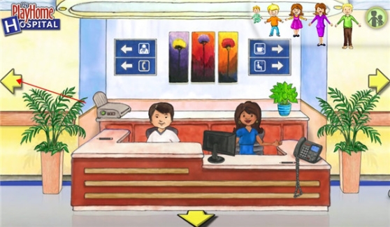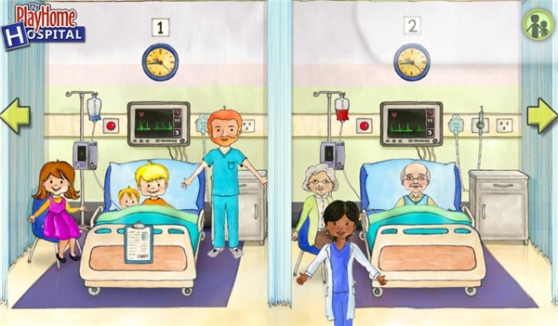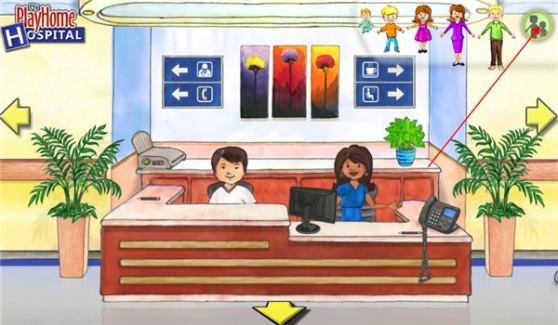 3、点击左右两边的箭头可以切换各种不同的医院游戏场景。