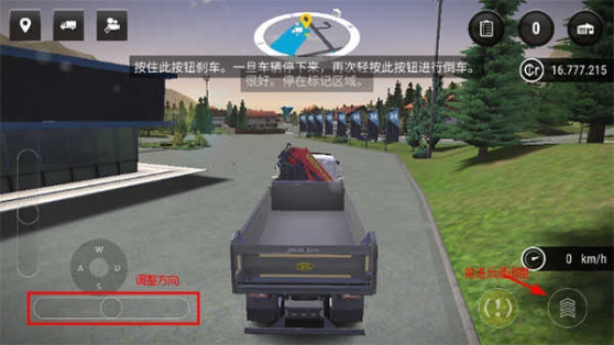 2、将车开到指定标记地点,左边调整方向,右边控制前进后退;