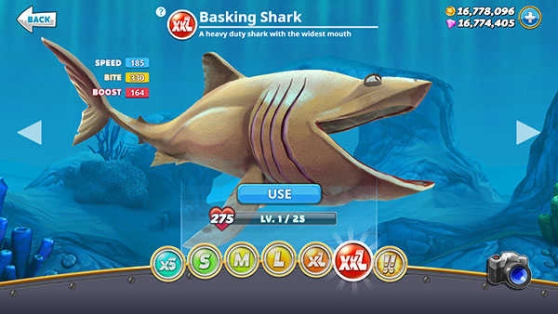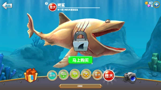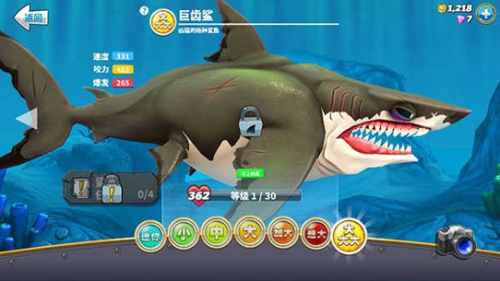 ps:玩家刚进入游戏发现鲨鱼最高只能解锁到xxl级,其实玩家最高可以解锁到!!级的鲨鱼,就是巨齿鲨。