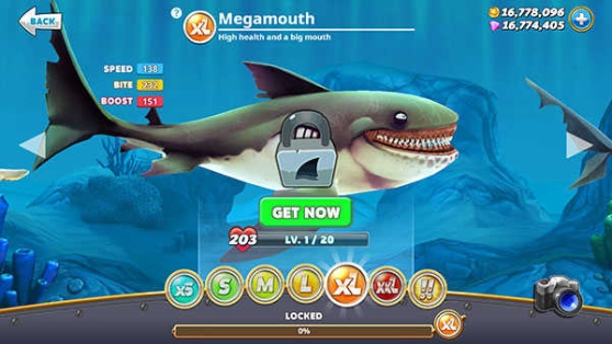 提示:玩家刚开始玩游戏时可能会误以为鲨鱼的最高等级只能达到L级,但实际上玩家能够解锁包括巨齿鲨在内的所有高级鲨鱼。