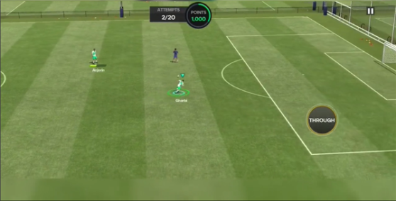 停球转身,完美踢出精准背身传球时让人体验到身为球队组织核心(Fantasista)的快感。(类似于 FIFA 训练功能中传球路线指示,但两者非同一系统。可在设置中关闭)