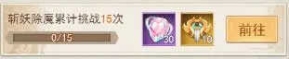 第五天开启的斩妖除魔目标——其实15次斩妖除魔说多不多,说少是真的少,因为除了2次强攻机会,每天还有8次额外挑战机会,每过一段时间稍微卡个点就可以轻松拿下任务~