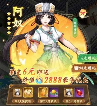 另有推荐无敌性价比礼包,小手一点3天送你2个阿奴,让你不费吹灰之力,拥有第一个六星橙品伙伴,战力大大领先他人,小酒都有点按捺不住自己的双手……