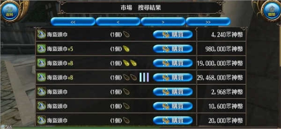 接下来就是曲折的赚钱,毕竟还是买的,玩家到达第5章意味着等级早己超过60这时我们回到主城索非亚找到一名叫“雷菲娜”的npc接受一个支线叫“勇猛的证明”三张牛王的皮回报一瓶“防劣化剂”(精练装备必备市场需求巨大)那么利用大剑佣兵(要求至少战力1w+)来进行废弃古寺三星二星米诺陶斯的战斗一把只有数秒(20-30s)一只至少会掉落1-3张牛皮那么刷上它几小时到300张即可一键回报99瓶化剂可获利80w+(2022.1.11板税后)那么接下来就用它来买以下装备。