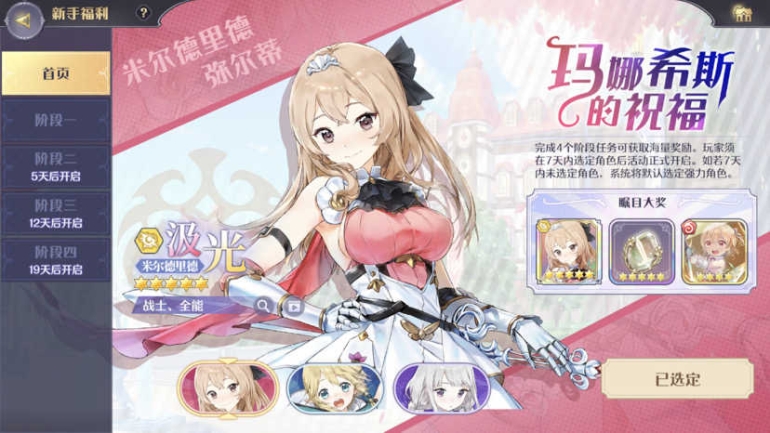 开局点开活动页面,找到这个活动,这个活动送满破ssr一个,时间1个月,根据时间解锁阶段,第一天可以拿到人物,
