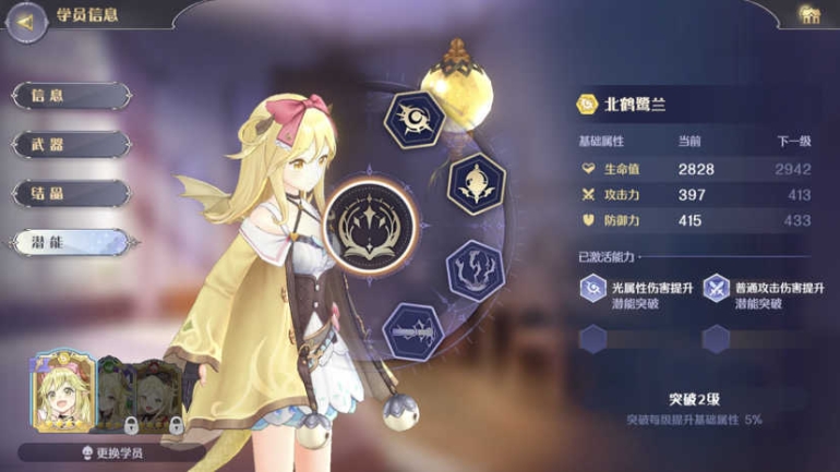 2.天赋根据角色定位来决定开启顺序,虽然和《深空之眼》不同战斗中可以自由切换主控角色,但因为前期养成资源紧张只能集中投放在主C身上,所以另外两个角色一般作为辅助挂件主点有增减益效果的QTE和连携技能。主C根据技能具体选择,一般以得意技,奥义和普攻为优先,然后是战斗被动和属性,最后是生活被动。