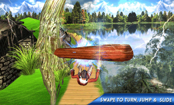 点击向前滑动就能够控制角色跳跃操作,该操作可以进入滑索状态,同时玩家重力感应左右倾斜手机来控制角色左右移动操作,收集各种钱币和躲避各种狭窄的道路