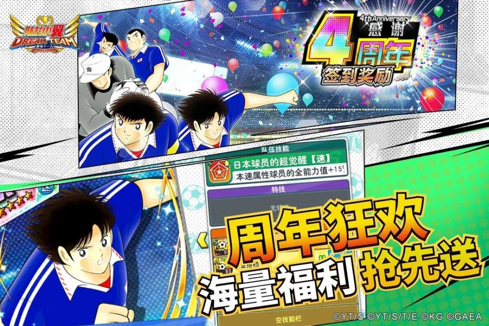每一次胜利都让我们热血沸腾,每一次必杀都能听到狂欢的呼声,由高桥阳一同名漫画改编,日本游戏公司KLab开发,盖娅互娱在中国大陆地区正式代理发行的足球策略对战手游带你重返青春记忆,延续万千玩家心中对队长小翼的深厚感情!热血重临!大空翼召你集结!