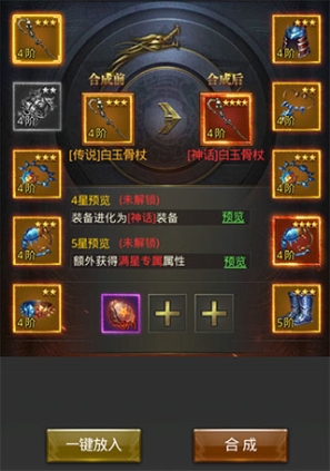 传说装备可通过此方式提升星级,星级提升至5星后即可进阶成神话装备,除基础属性能大幅提升外,还能获得更多条附加词条。另外神话装备均拥有一条神话属性,属性将随角色等级提升而成长。